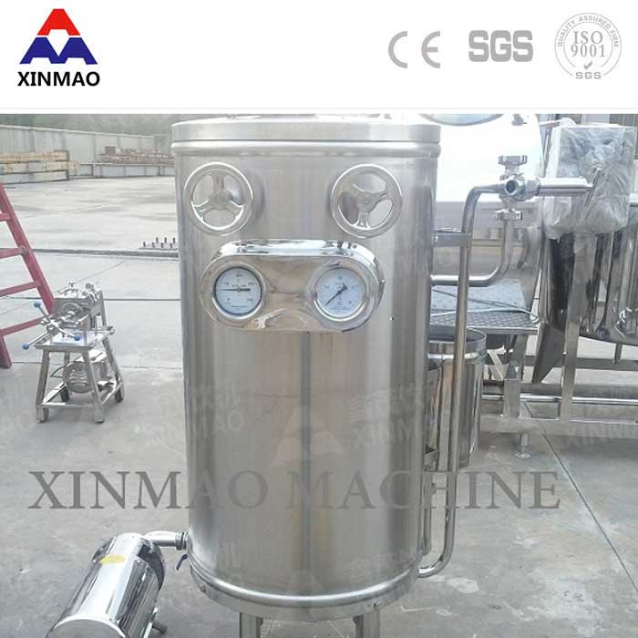 超高溫瞬時滅菌機一般物料由離心泵泵入滅菌機中冷熱料熱交換裝置中而得到預熱,再經(jīng)過充滿高壓的高溫桶,物料被迅速加熱到殺菌溫度并在此前后保持約6秒,其中的微生物及酶類很快被殺滅。物料出高溫桶后通過與冷卻水的熱交換獲得冷卻,一般溫度低于65℃。如果下道工序需要提高溫度則可通過調(diào)節(jié)角式截止閥或循環(huán)等途徑達到要求,出料溫度85℃,反之則通過接入冷卻水來降低出料溫度。出料通過節(jié)流閥控制,此閥能使在維持一定壓力下物料的沸點高于高溫度。正常生產(chǎn)時調(diào)節(jié)此閥,由泵的推動力克服彈簧壓力而產(chǎn)生背壓控制流量,在清洗滅菌機時則應全部開啟。循環(huán)貯槽可用來配制酸堿溶液,對盤管內(nèi)壁積垢進行有效清洗。由于同時采用不銹鋼三通旋塞,流量可以得到適當調(diào)節(jié)。
