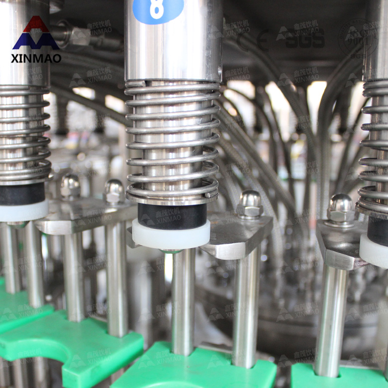 灌裝機是我公司自行設計,灌裝閥擁有自主知識產權,運用壓力灌裝負壓式回流的原理。