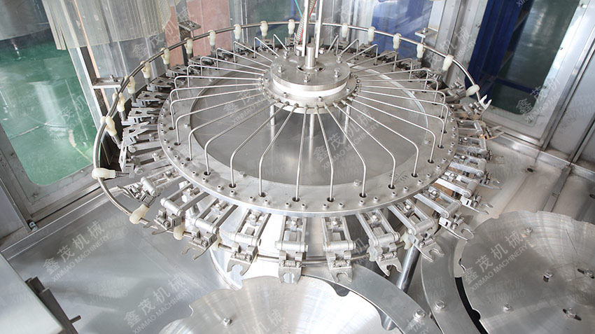 果汁灌裝機(jī)洗瓶部分為回轉(zhuǎn)式?jīng)_瓶機(jī),主要用于飲料、水等產(chǎn)品的pet瓶沖洗之用。然后將瓶子送至果汁灌裝機(jī)進(jìn)行產(chǎn)品的灌裝。